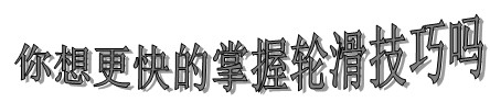 排轮滑学习小常识 ▲站得稳稳、直直的:将两只脚站成T字形或将两脚脚跟并在一起,使成V字形。 ▲起步:从T字形站姿起步,让前脚保持前进姿势,后脚向外方推轫,就会有向前前进之力量。 ▲滑行:滑行时为保持较好的平衡,让一脚稍稍提起放在另一脚前方,膝盖弯曲。 ▲身体的摆动:将重心放到左脚,用右脚推轫并伸向外侧伸展,滑行;然后将双脚并行。接下来将重心放到右脚,左脚向外推轫、伸展、滑行,如此左右不断互换。 ▲身体的姿势:身体稍稍半蹲,像是要坐。将双脚向前伸出,弯曲膝盖及脚踝,使重量在整双鞋上放松。 ▲停止:以上述姿势滑行,双脚靠近保持平行,有煞车的那脚稍稍向前滑行,使两脚距离约有半个脚,提起脚尖直到煞车碰触到地面,然后慢慢将重量移到煞车,增加压力,直到停下来。